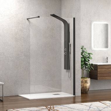 Σταθερό πάνελ καμπίνας με διάφανο κρύσταλλο WALKIN 1 Nero KARAG 170x200cm