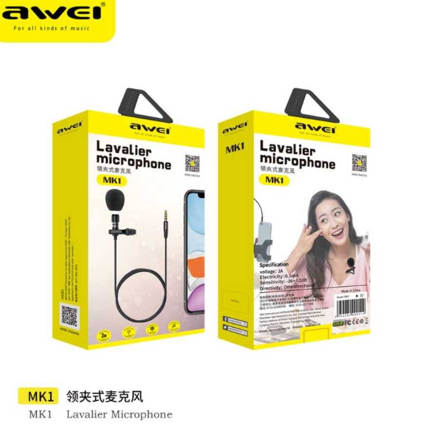 Το Awei MK1 είναι ένα ελαφρύ μικρόφωνο με κλιπ που μπορεί να τοποθετηθεί εύκολα πάνω στα ρούχα. Το βάρος του είναι μόλις 20gr και το καλώδιο 3 μέτρων παρέχει ελευθερία κινήσεων. Είναι συμβατό με οποιοδήποτε συσκευή που διαθέτει είσοδο μικροφώνου 3,5 mm.