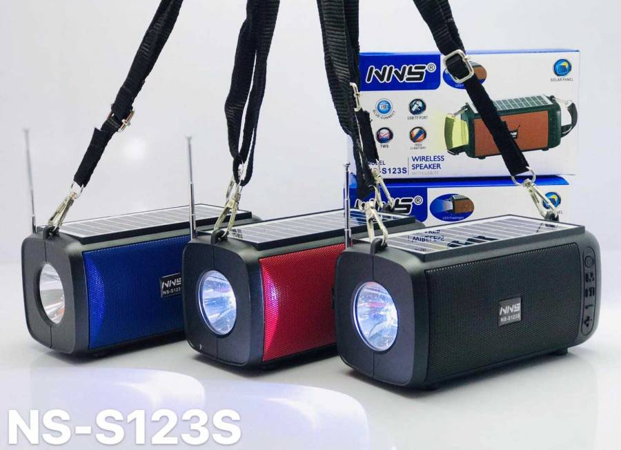 Ηλιακό Φορητό Ηχείο Bluetooth με πλαινό φακό LED και λουράκι για εύκολη μεταφορά.