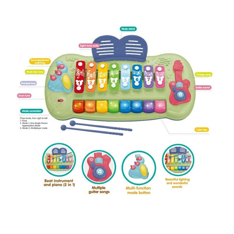 Παιδικό εκπαιδευτικό ξυλόφωνο και πιάνο, 2 σε 1, με πλήκτρα ήχων από όλα τα μουσικά όργανα, για τους μικρούς λάτρεις της μουσικής.