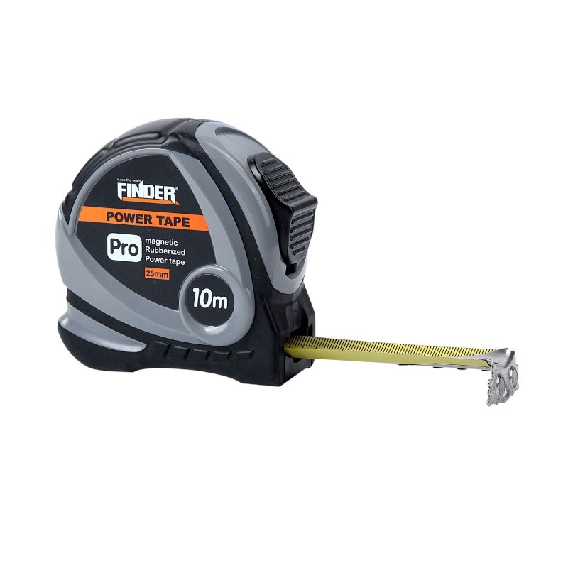 Μετροταινία 10m x 25mm, Finder, με αυτόματο μάζεμα, λουράκι μεταφοράς και κουμπί Stop.