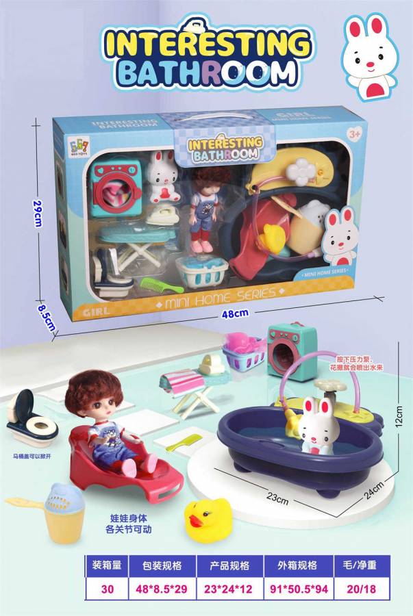 Σετ κούκλα με πλήρες σετ αξεσουάρ μπάνιου και φροντίδας, για την περιποιηθείς και να το φροντίσεις όπως εσύ θα ήθελες.