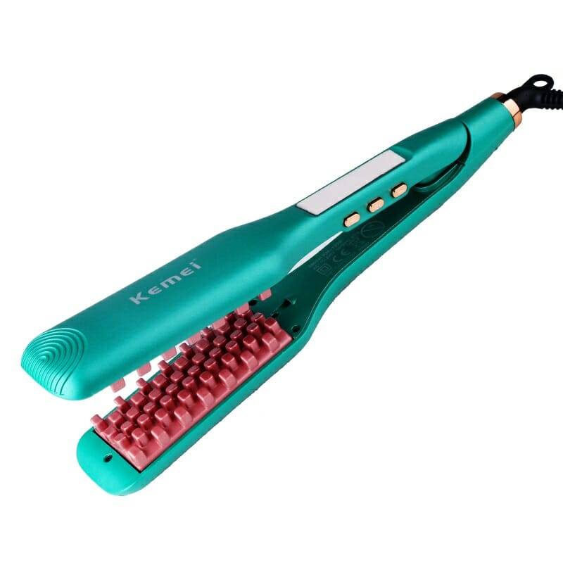 Ισιωτική πρέσα μαλλιών – Multistyler της Kemei για ίσιωμα αλλά και σγουρό Look χάρη στις πρωτοποριακές πλάκες που διαθέτει για εφέ ”τοστ”. Ισιώνει με μία κίνηση καθώς οι ειδικές εγκοπές ”αγκαλιάζουν” και χτενίζουν τα μαλλιά σας ενώ η θερμότητα διαχέεται ομοιόμορφα. Οι κεραμικές μεγάλες πλάκες της, πλάτους 5cm, διαθέτουν ειδική επίστρωση τουρμαλίνης που προστατεύει τα μαλλιά απ τη θερμότητα και προσφέρει ένα λείο και λαμπερό αποτέλεσμα.