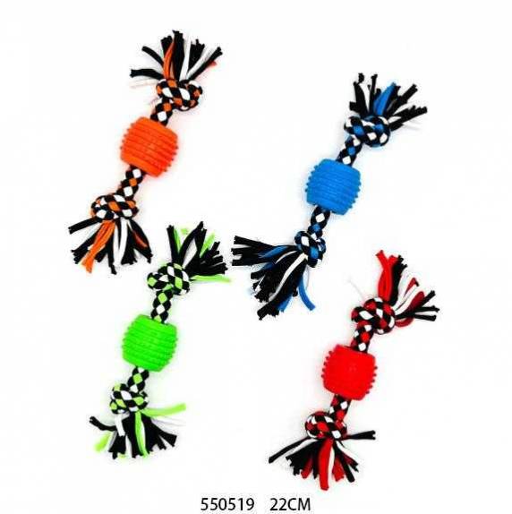 Παιχνίδι σκύλου σχοινί με μπάλα μασητική, από ανθεκτικό, μη τοξικό πολυεστέρα, ιδανικό για παιχνίδια τραβήγματος/αντίστασης ενώ παράλληλα βοηθά στην υγιεινή στόματος του σκύλου σας καθώς καθαρίζει ήπια και απασχολεί τα δόντια του.