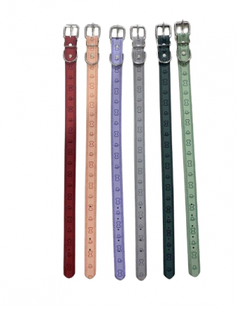 Περιλαίμιο-Κολάρο σκύλου με σχέδια και κούμπωμα ζώνης. Διαθέτει ρυθμιζόμενο μήκος έως 56cm και πλάτος 3cm. Διαθέτει επίσης κρικάκι ώστε να κρεμάσετε την ταυτότητα του κατοικιδίου σας ή αξεσουάρ.