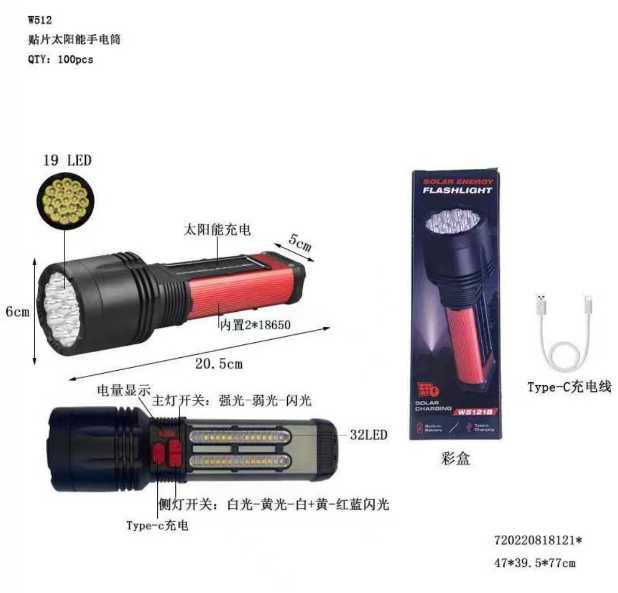 Επαναφορτιζόμενος φακός χειρός υψηλής ισχύος, LED Cree XPE-R2, με ηλιακό πάνελ για έξτρα αυτονομία μπαταρίας.