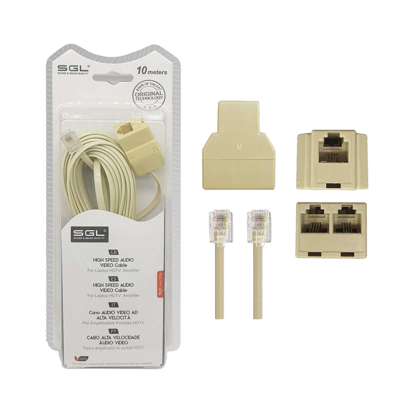 Καλώδιο γραμμής τηλεφώνου με διακλαδωτή - 6P4C1-2 - 10m - 097084