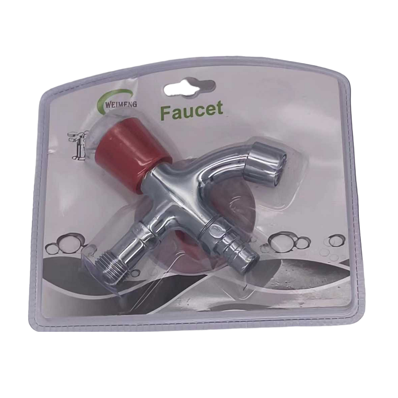 Βρύση-Κάνουλα διπλή με βάνα, ανθεκτική στη διάβρωση, κατασκευασμένη από επιχρωμιωμένο ορείχαλκο.
