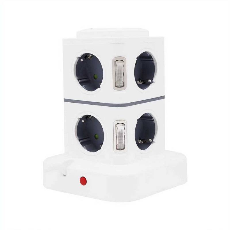 Κάθετο πολύπριζο 8 θέσεων με διακόπτες και πρίζα Σούκο - RC-G8P. Μήκος καλωδίου: 3m