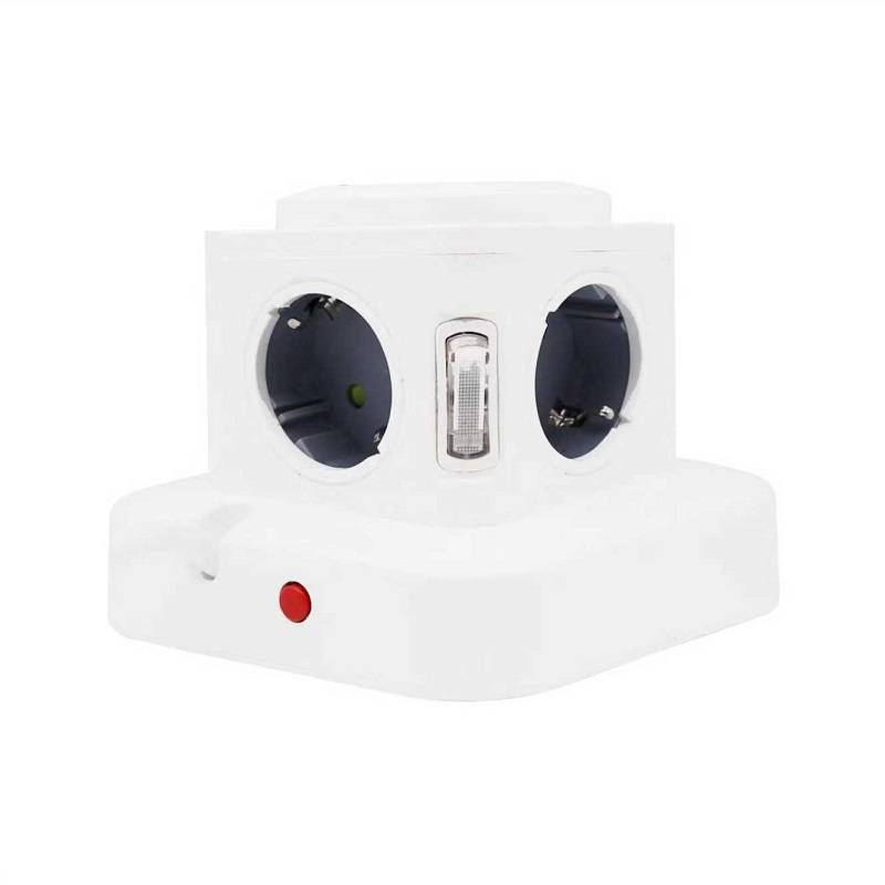 Κάθετο πολύπριζο 4 θέσεων με διακόπτες και πρίζα Σούκο - RC-G4P. Μήκος καλωδίου: 3m