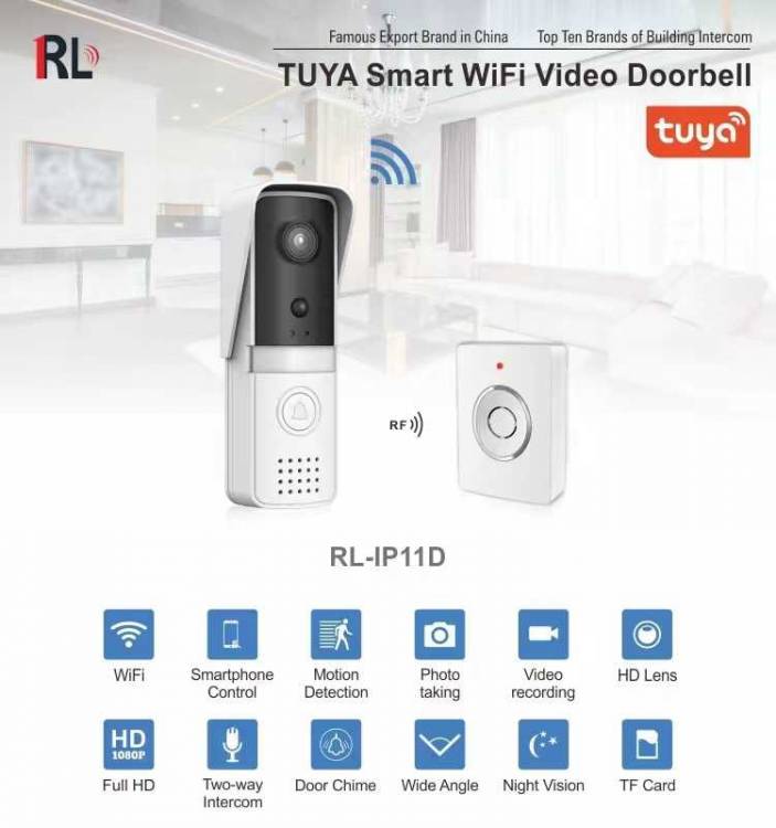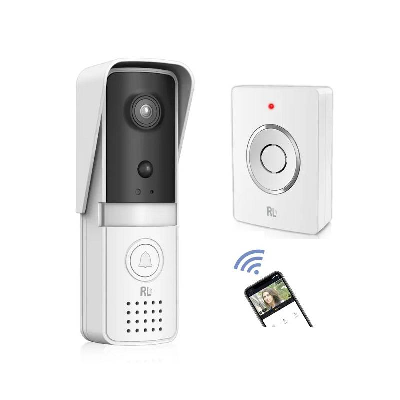 Ασύρματο κουδούνι πόρτας με κάμερα ασφαλείας, ανιχνευτή κίνησης και εύκολη σύνδεση με το Smartphone σας, στο οποίο μπορείτε να ελέγχετε συνεχώς την εικόνα μέσω app και να λαμβάνετε ειδοποίησεις όταν ο αισθητήρας εντοπίσει κίνηση. Ασύρματη σύνδεση WiFi 2,4 GHz.