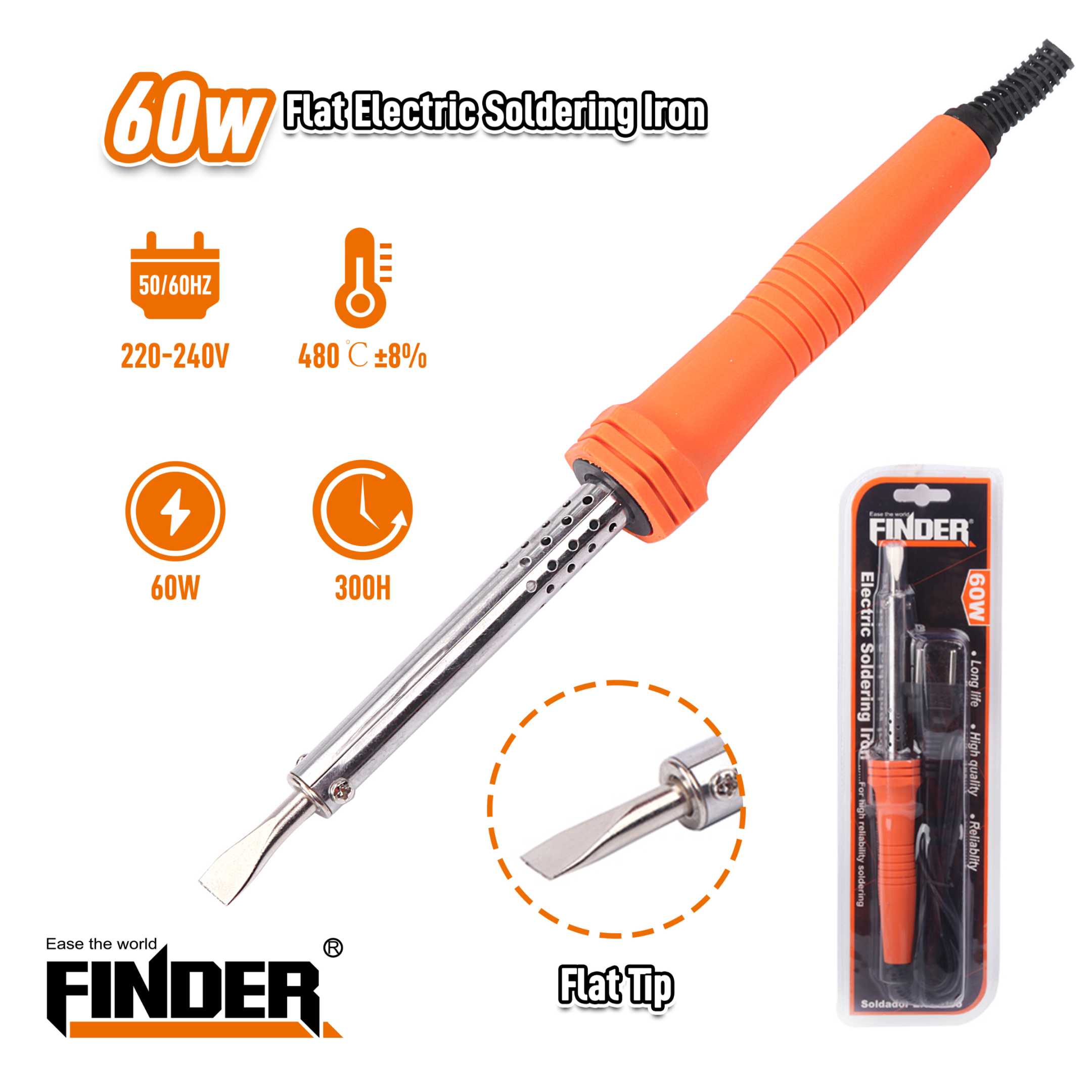 Υλικό: ατσάλι/SteelΙσχύς: 60wΤάση: 220-240VΣυχνότητα: 50/60HZΘερμοκρασία έως 520°CΧρόνος ζωής έως 380 ώρες λειτουργίαςΜήκος καλωδίου 1.30mTip Type: Flat Tip