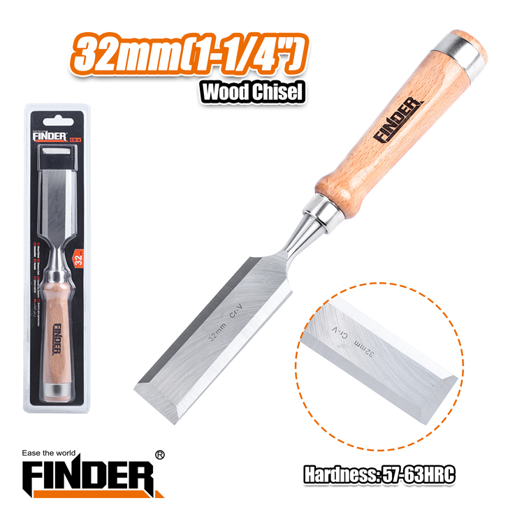 Σκαρπέλο ξύλου, κατασκευασμένο από Cr-V ατσάλι, με εργονομική ξύλινη λαβή.