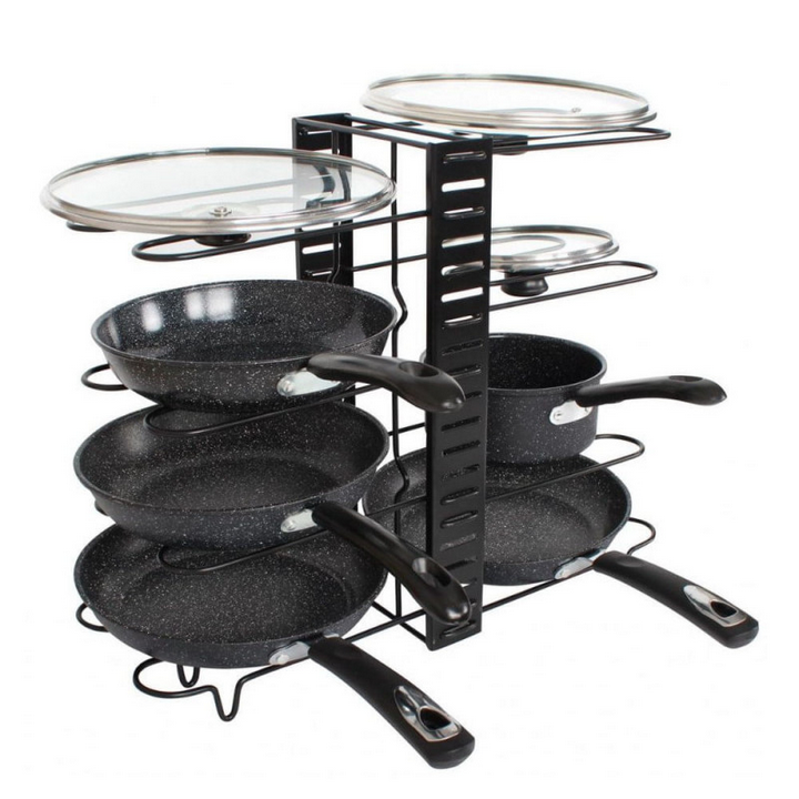 Βάση οργάνωσης σκευών κουζίνας διπλή, μεταλλική, με διαχωριστικά που μπορούν να τοποθετηθούν ανάλογα με το μέγεθος θέσεως που επιθυμείτε. Διαστάσεις: 47 × 38 × 20cm