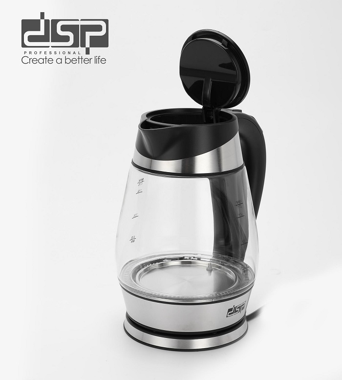 Ηλεκτρικός βραστήρας της DSP, υψηλής ισχύος και άμεσης θέρμανσης, με πρακτικό διαφανή σχεδιασμό και δυνατότητα επιλογής θερμοκρασίας.