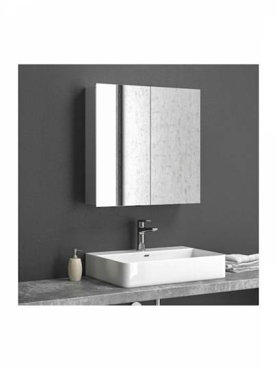 Karag Economy 600 Ορθογώνιος Καθρέπτης Μπάνιου από Μέταλλο με Ντουλάπι 60x60cm Λευκός