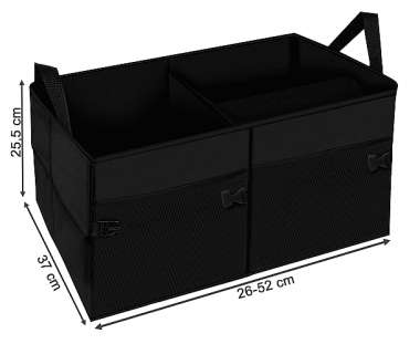 Λαβές μεταφοράς – το αναμφισβήτητο πλεονέκτημα αυτού του πρακτικού οργανωτή χώρου αποσκευών είναι οι λαβές μεταφοράς. Πρόκειται για μια πολύ βολική χρήση, επειδή ο οργανωτής μετατρέπεται σε μια πρακτική τσάντα (δεν χρειάζεται να ξεπακετάρετε τα πράγματά σας όταν φεύγετε από το αυτοκίνητο, μπορείτε απλώς να τα βάλετε στον οργανωτή).