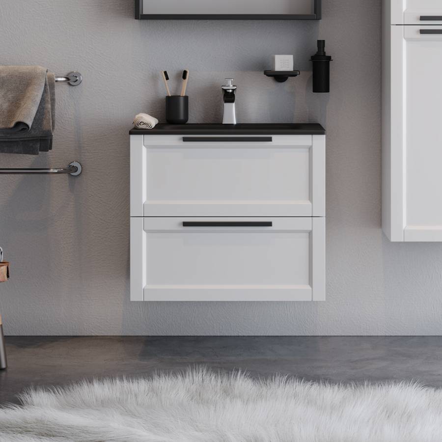Σετ Έπιπλο Μπάνιου LAGUNA Λευκό MDF 18mm Λάκα 60 9SLAG060WHM Πάγκο 61x46.50x52cm Αποτελείται από: Πάγκος LAGUNA Λευκός 60 κρεμαστός σε ματ λάκα και υλικό mdf. Διαθέτει δύο συρτάρια για την τοποθέτηση και οργάνωση αντικειμένων. Καθρέφτης με LED φωτισμό στο πάνω μέρος. Το πλαίσιο του καθρέπτη είναι από mdf με ματ μαύρη λάκα. Νιπτήρας πορσελάνης χρώματος μαύρο, κορυφαίας κατασκευής και υψηλής αισθητικής. Διαθέτει οπή υπερχείλισης. Ματ λάκα σε mdf Σετ Έπιπλο Μπάνιου LAGUNA σε Λευκή απόχρωση αποτελεί ένα στυλάτο και μοντέρνο κομμάτι με εργονομικό σχεδιασμό αλλά και λειτουργικότητα. Προσαρμόζεται σε κάθε τύπο μπάνιου. •Πρακτικοί αποθηκευτικοί χώροι •Μηχανισμοί για απαλό και αθόρυβο κλείσιμο •Εύκολη τοποθέτηση •Ετοιμοπαράδοτα προϊόντα Δεν συμπεριλαμβάνονται η μπαταρία, η στήλη και τα διακοσμητικά. Διατίθεται έτοιμο συναρμολογημένο.