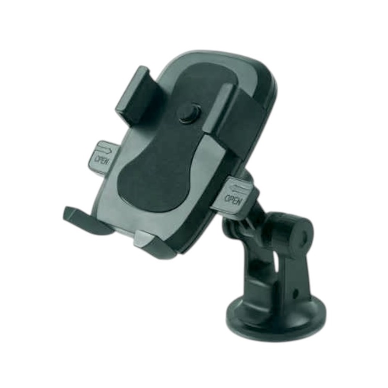 Βάση στήριξης smartphone αυτοκινήτου με πολλαπλές ρυθμίσεις. Τοποθέτηση στο ταμπλό ή στο παρμπρίζ με ισχυρή βεντούζα/αυτοκόλλητο. Βάση στήριξης κινητού προσαρμόσιμου πλάτους, με προστατευτικά σιλικόνης. Πτυσσόμενος βραχίονας. Μέγιστο πλάτος/άνοιγμα βάσης: 9cm.