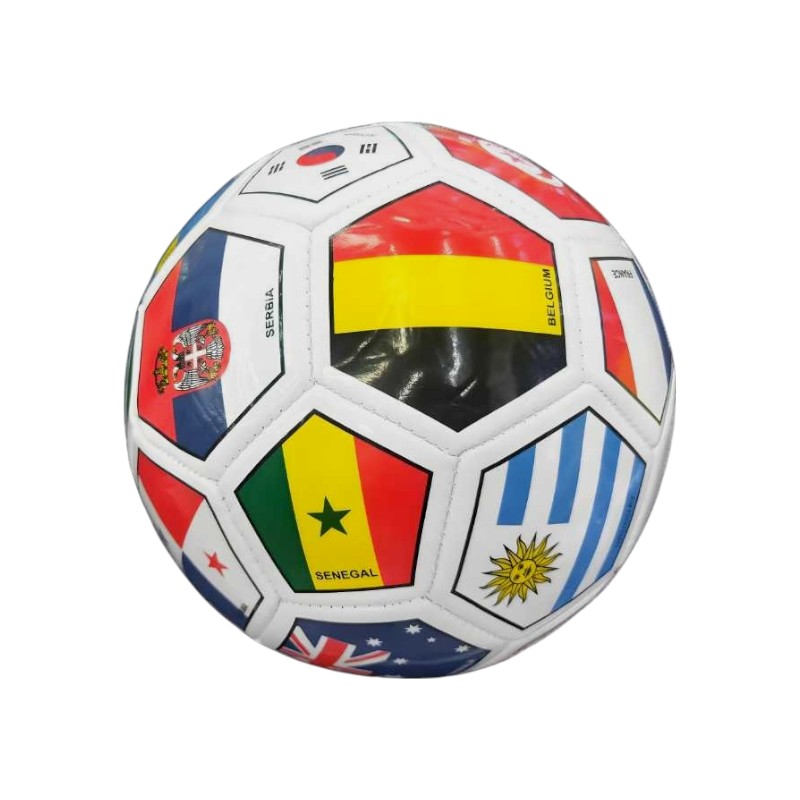 Παιδική μπάλα ποδοσφαίρου με πολύχρωμα σχέδια, κατασκευασμένη από υψηλής ποιότητας και ανθεκτικότητας υλικό.