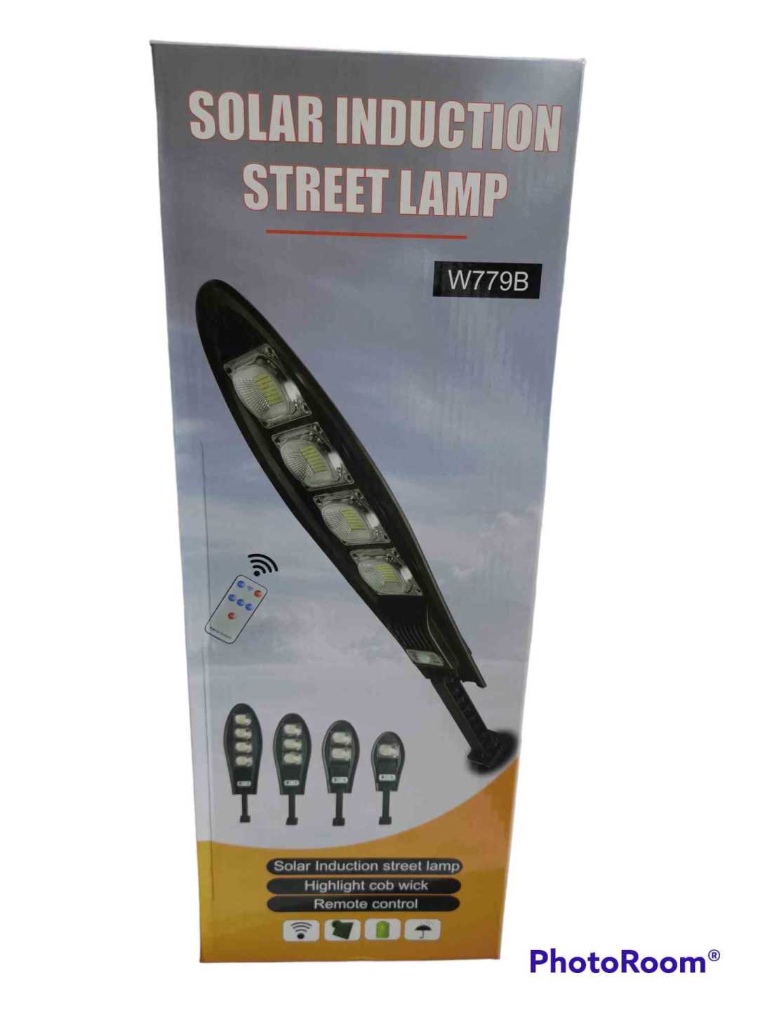 Ηλιακό φωτιστικό δρόμου σε μαύρο χρώμα, που συγκεντρώνει και αποθηκεύει ηλιακή ενέργεια για τη λειτουργία του, ώστε να μη χρειάζεται να συνδεθεί σε παροχή ρεύματος. Διαθέτει ανιχνευτή κίνησης για να ενεργοποιείται όταν εντοπίσει κίνηση εντός της εμβέλειας του (έως 8m).