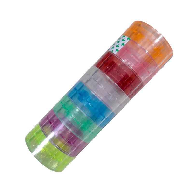 Αυτοκόλλητες ταινίες Σελοτέιπ πολύχρωμες, υψηλής αντοχής, ιδανικές για συσκευασία και χειροτεχνίες. Μήκος ρολού: 20m.Πλάτος ταινίας: 1.8cm.