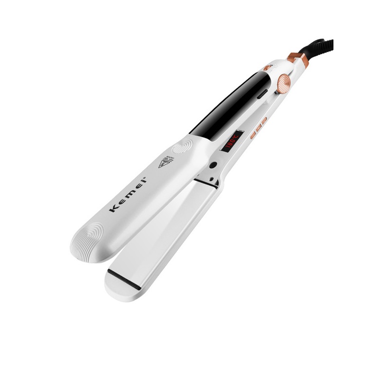 Ισιωτική μαλλιών Kemei με ατμό και κεραμικές πλάκες με τεχνολογία τουρμαλίνης που προστατεύει τα μαλλιά απ την θερμότητα και τη φθορά, για ένα λείο και λαμπερό αποτέλεσμα! Οι φαρδιές της πλάκες και η ταχύτατη θέρμανσή της σας βοηθούν να ολοκληρώσετε το χτένισμα σας σε ελάχιστο χρόνο.