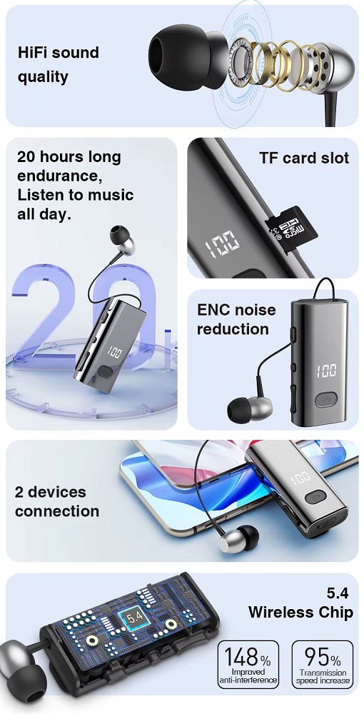 Ακουστικό Handsfree Bluetooth με σχεδιασμό clip-on-collar και επεκτεινόμενο καλώδιο. Ασύρματο, διακριτικό και πρακτικό, με ιδιαίτερα ανθεκτική κατασκευή και υποδοχή κάρτας SD που σας επιτρέπει να μεταφέρετε την αγαπημένη σας μουσική παντού.