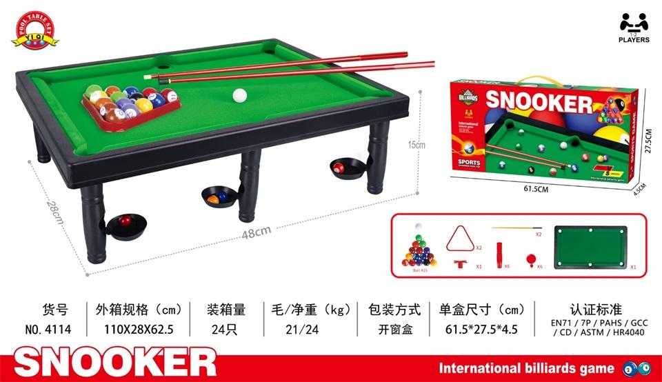 Επιτραπέζιο μπιλιάρδο cmini, πλαστικό, με τσόχα, σε υπέροχο ρεαλιστικό σχεδιασμό, με 2 στέκες και πλήρες σετ αξεσουάρ, για τους μικρούς λάτρεις του αθλήματος.