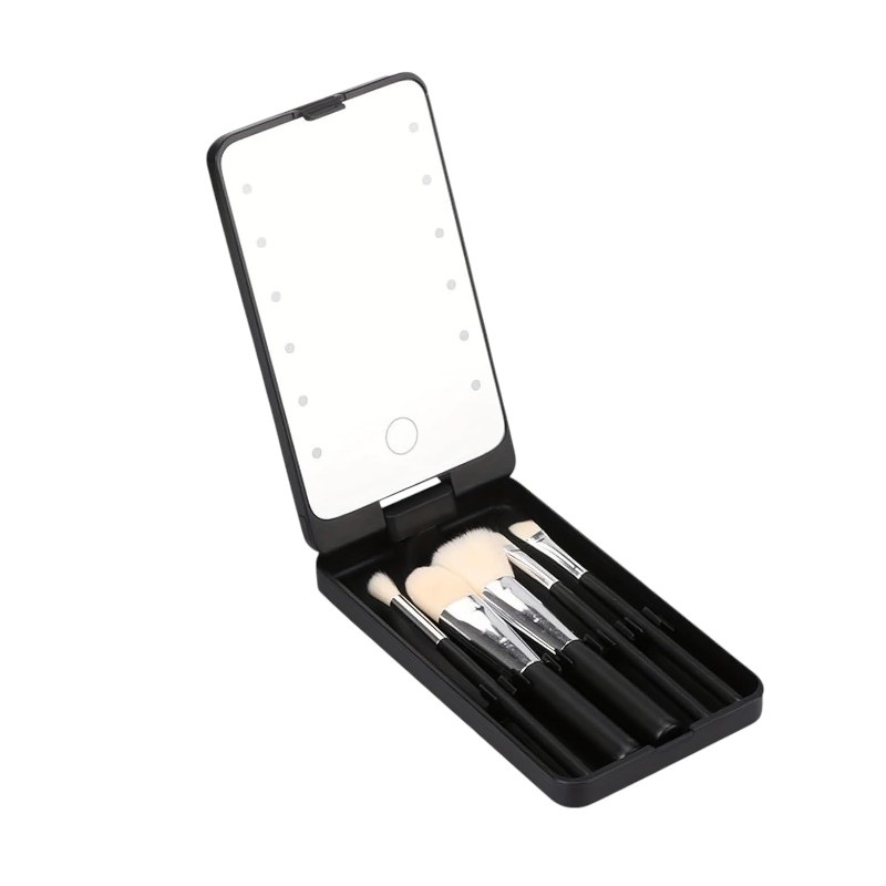 Καθρέπτης μακιγιάζ LED κασετίνα με σετ πινέλων - XR-6601 - 566016 - Black