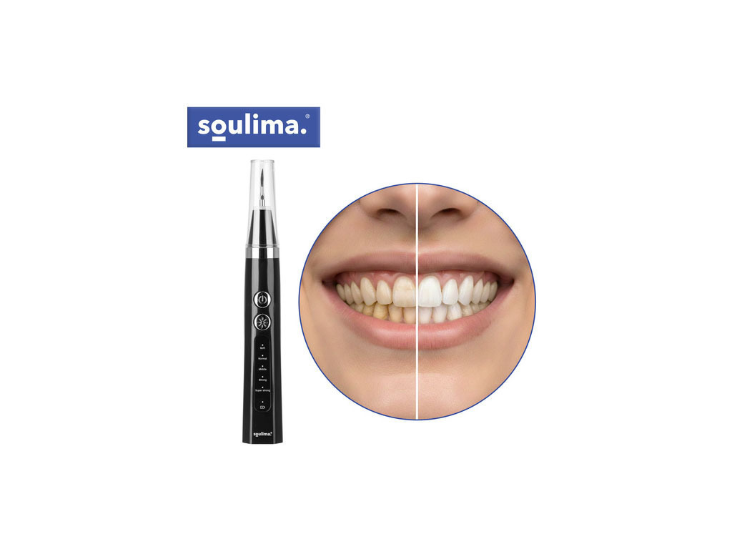 Η επαναφορτιζόμενη υπερηχητική οδοντιατρική συσκευή Soulima διαθέτει 5 λειτουργίες και διαστάσεις 3.5 x 18.8 cm. Σχεδιασμένη για ασφαλή και αποτελεσματική αφαίρεση αλάτων, επικαθίσεων και αποχρωματισμού, προσφέρει επαγγελματικά αποτελέσματα στο σπίτι. Η ρύθμιση έντασης επιτρέπει έως πέντε επίπεδα, με ακριβείς άκρες για στοχευμένο καθαρισμό.