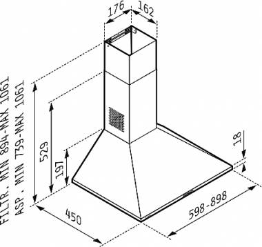 Ο απορροφητήρας της εταιρείας Pyramis τοποθετείται στον τοίχο. Είναι σχεδιασμένος με ένα διακοσμητικό που καλύπτει τη σωλήνα εξαγωγής αέρα και μοιάζει με καμινάδα.