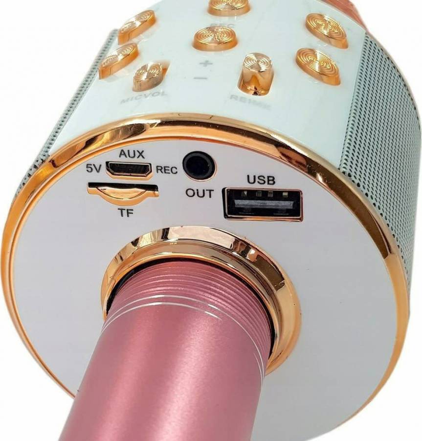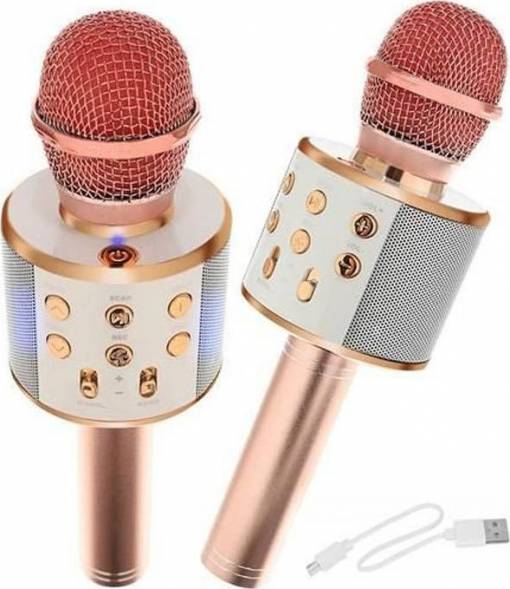 Ασύρματο Μικρόφωνο Καραόκε με Bluetooth και μεγάφωνο σε Ροζ Χρυσό, 23x7.5 cm