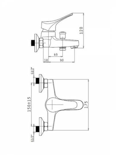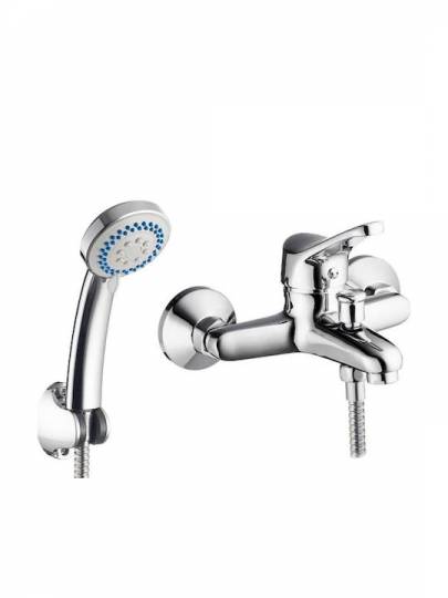 Αναμεικτική επίτοιχη μπαταρία λουτρού με σετ ντους (τηλέφωνο, σπιράλ και στήριγμα ντους).